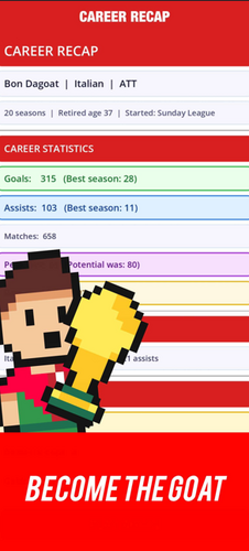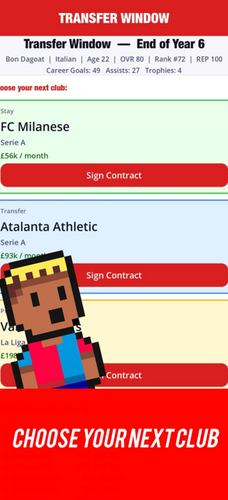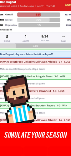 Welcome to BitSoccer, the ultimate life simulator where every choice defines your career. In the style of classic life sims, BitSoccer lets you live the journey of a professional player from your debut as a teenager to your final retirement.