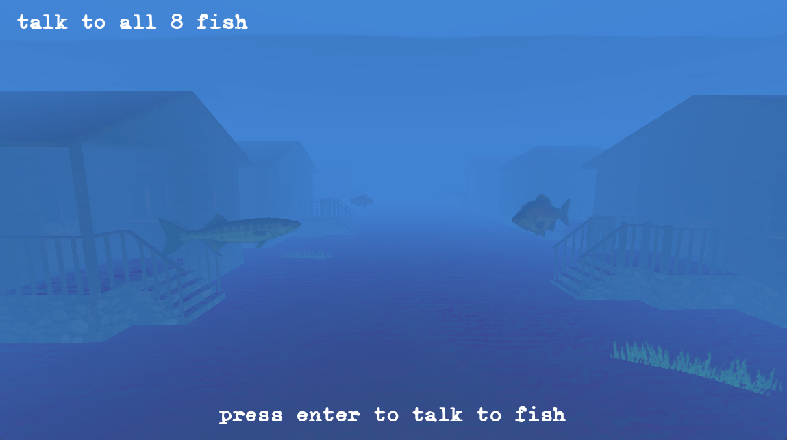 enter to talk to fish and enter to jump in final act and wasd for swimming